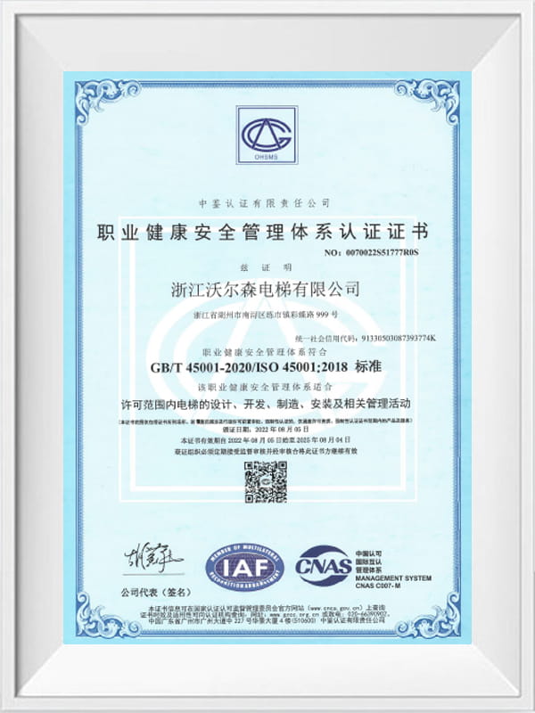 Certificate Of Conformity Of Occupational Health And Safety Management System Certification